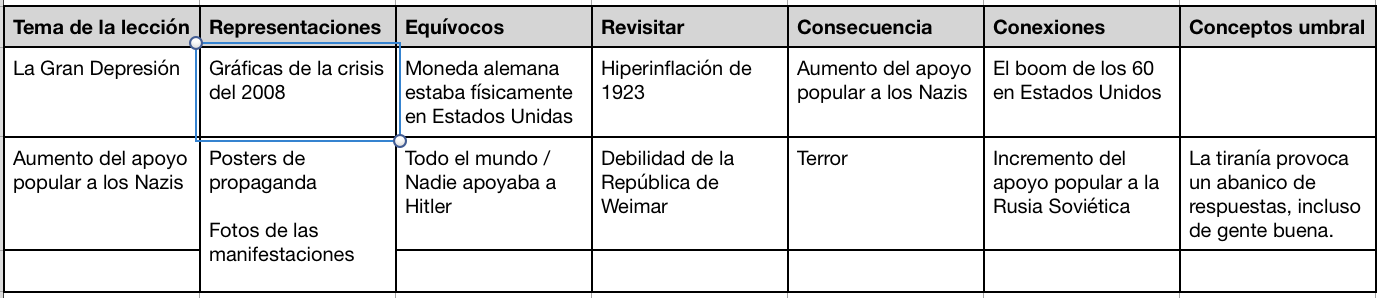 - Apoyarnos en: maneras de explicar y representar las ideas clave, establecer los posibles equívocos e incomprensiones, y explícitas las oportunidades para conectar con los conceptos umbral.