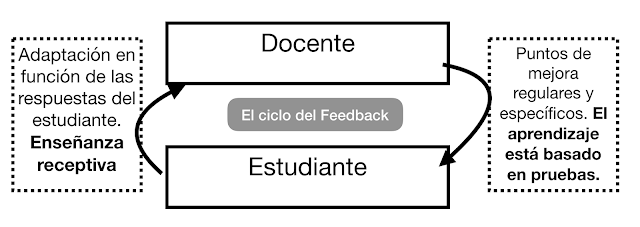 Pero en este punto los autores nos advierten: no todo el feedback es buen feedback. El mal feedback no dice nada acerca de cómo mejorar. Es, por tanto, un proceso recíproco y, como lo denomina Harry Fletcher-Wood en su libro, \»Responsive\», que responde siguiendo este diagrama: