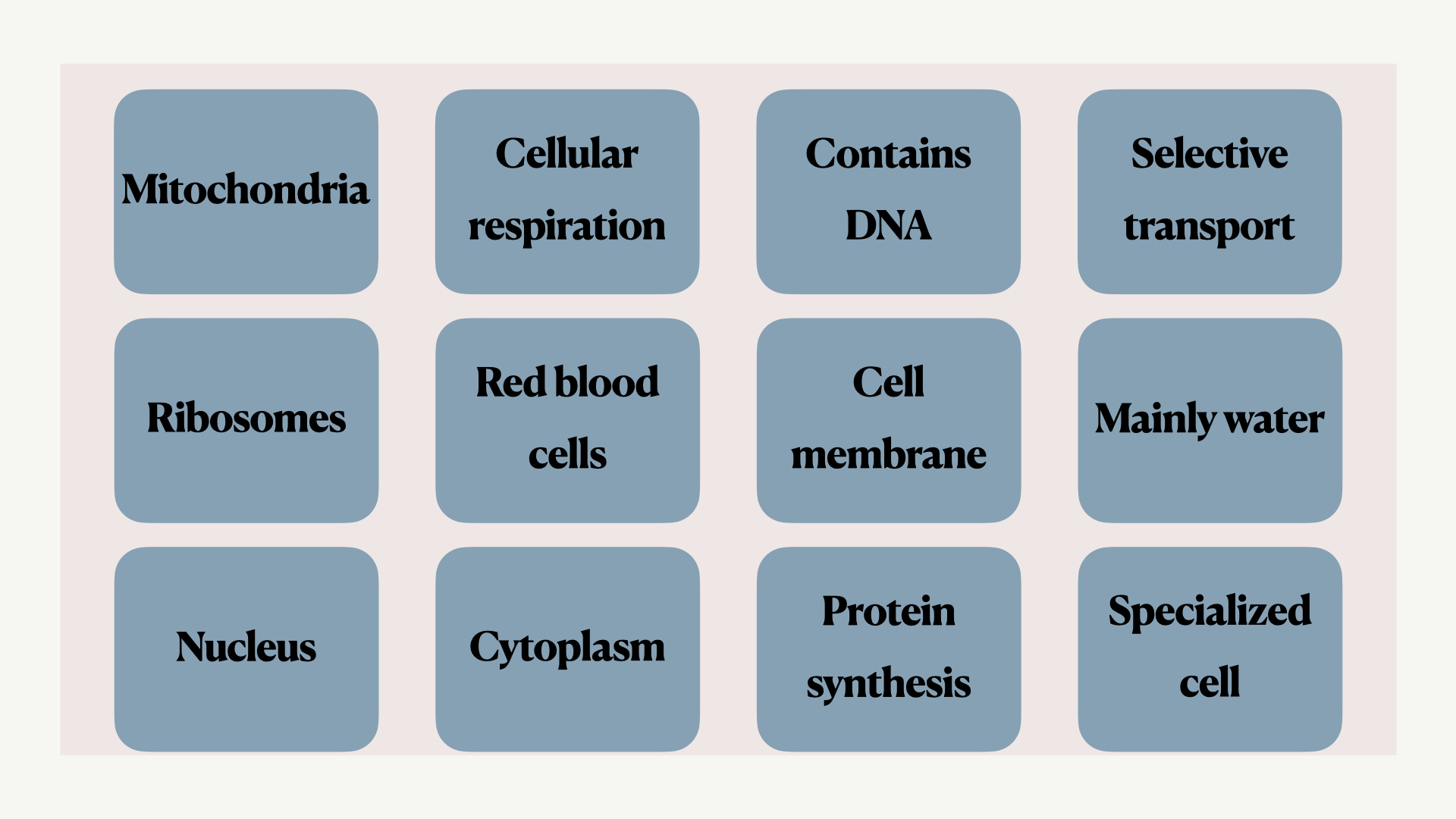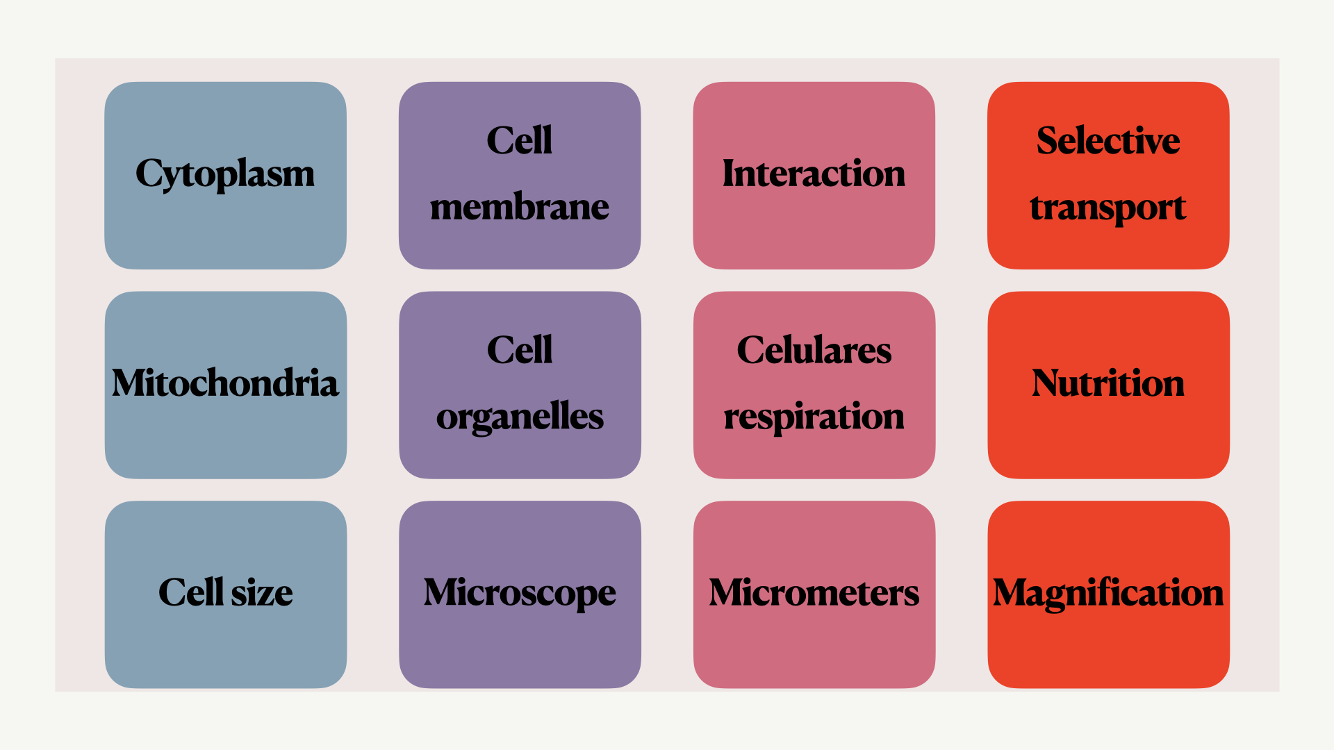 En este caso cada fila de conceptos está enlazado, siguiendo un orden de dificultad en el currículum de Biología de 3º ESO. A la izquierda está lo más sencillo o concreto, y a la derecha lo general y por tanto más complejo. De esta forma creamos lo que se denomina «dificultades deseables» o un nivel de desafío que se va incrementando y que requiere que los estudiantes decodifiquen y evoquen para promover el aprendizaje, la comprensión y la memoria a largo plazo. Una buena forma de emplear esta técnica es también al final de una unidad, dejando 10 minutos para que escriban todo lo que puedan usando solo su memoria, y seleccionando las preguntas que quieran.