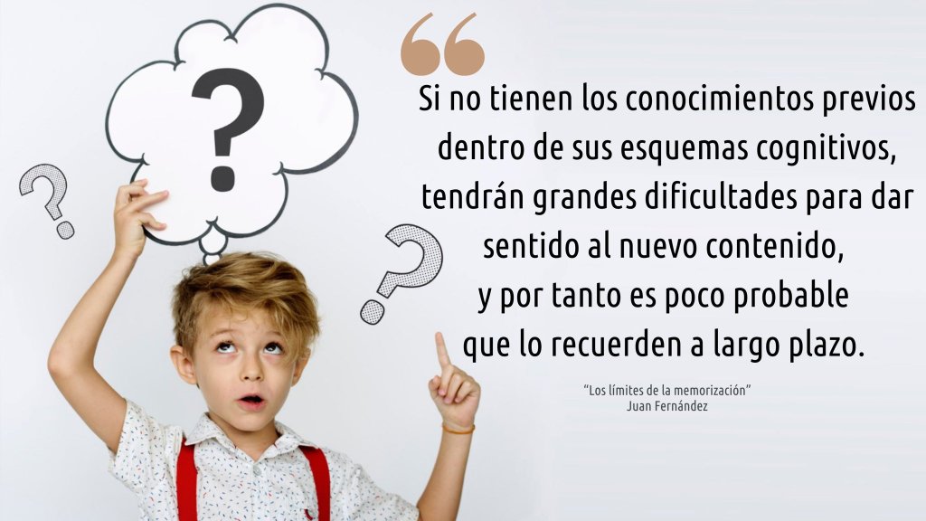 Es esencial tener en cuenta que los conocimientos aislados no se recuerdan fácilmente, mientras que los conocimientos integrados y jerarquizados en una estructura compartida, común y bien entendida se conservarán mejor.
