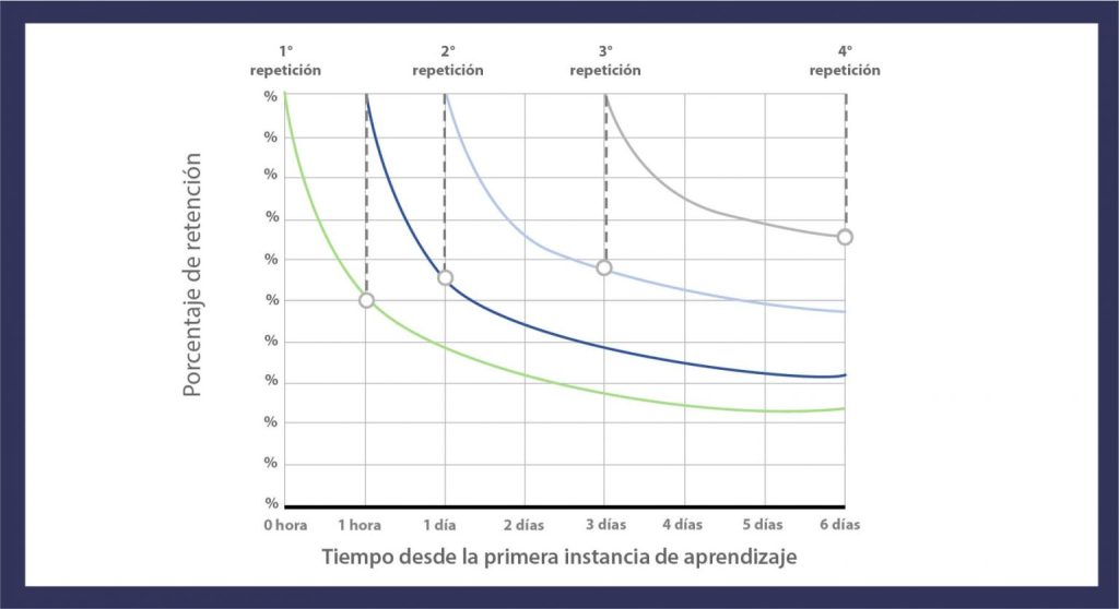 - Cada vez que hacemos el esfuerzo de recordar lo que sabemos, la tasa y la cantidad de olvido se reduce un poco.